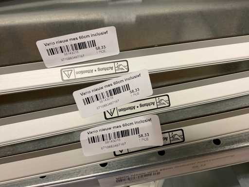 Include coltelli Vario, 60 e 80 cm, tutti in 1 sezione a cremagliera.