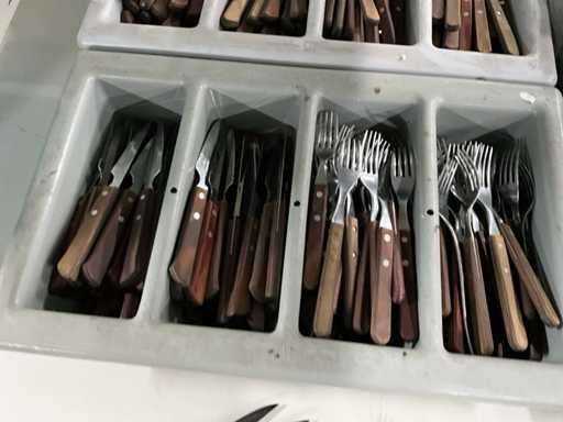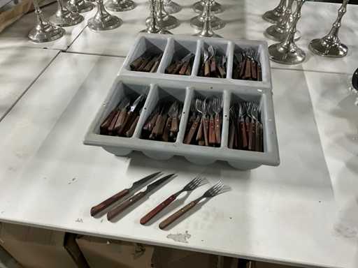 identici; 90 x coltello, 110 forchette; Include 2 vassoi per posate.