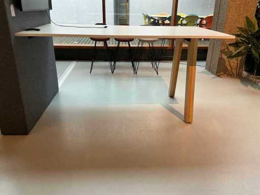 Consiste in un tavolo alto 220x120x109cm e un tavolo normale 220x120x75cm. Dotato di parete divisoria con supporto per il monitor. Senza la televisione.