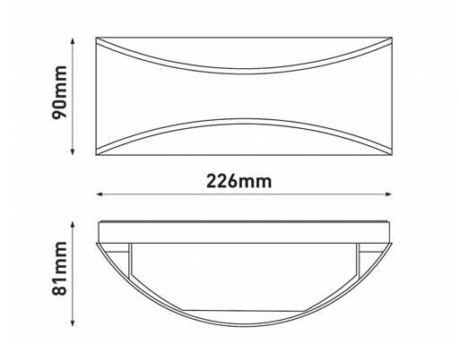 colore chiaro 3000K bianco caldo, flusso luminoso 660 lumen, LED COB, impermeabilizzazione IP54, materiale alluminio e PC, dimensioni 226mm x 81mm x 90mm, tensione 220-240V, durata 20000 ore, montaggio incluso, adatto sia per interni che esterni, SKU 01209