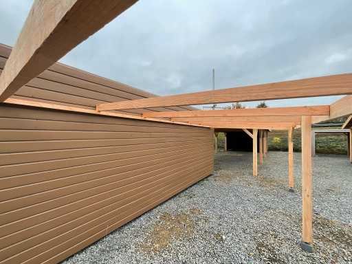 Questo elegante posto auto coperto da parete in legno di Larice/Douglas non trattato offre una soluzione robusta per proteggere la tua auto o creare spazio extra riparato per la tua casa. Il telaio viene consegnato in kit, completo di materiali di montaggio (ad eccezione del montaggio a parete) e di un chiaro manuale di montaggio per un facile montaggio.