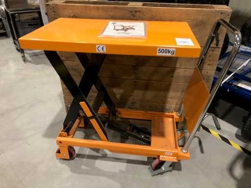 Piattaforma elevatrice mobile con un'altezza di sollevamento compresa tra 340 e 900 mm, ideale per lavori di prelievo e assemblaggio.