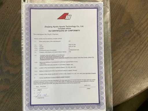 Possibile approvazione stradale UE, certificato UE