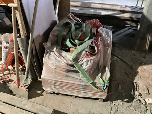 Contenuti composti da vari materiali da costruzione, tra cui mattoni, tegole, sacchi di cemento e adesivi, vari utensili manuali, ecc... (escluso la lavatrice di stuccatura Berta)