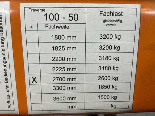 Rastrelliera di circa 5,7 metri, dimensione verticale (110x10x350cm), trave (270x10x5cm), 4x mensola in legno