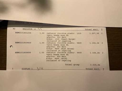 Colore beige perla, marrone ruggine e oro, 950 watt. Include il controllo RF.
