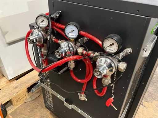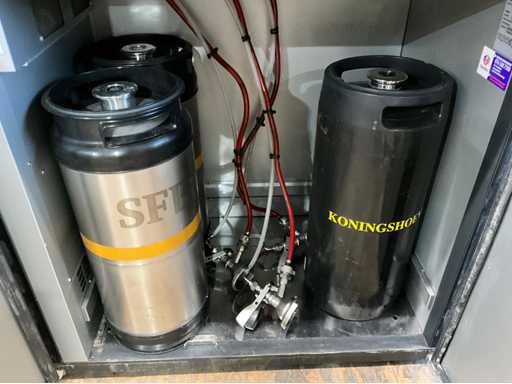 2 porte; dotato di vari connessioni a canna; motore di raffreddamento integrato; inclusi 3 fusti di birra vuoti;
