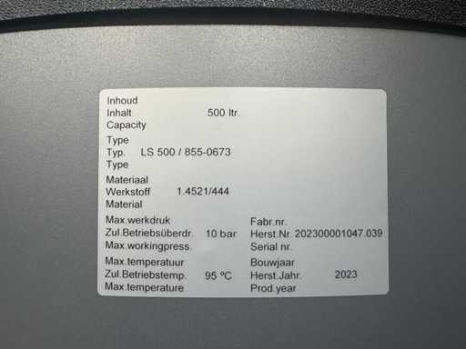Remeha Toros Vision boiler tank in acciaio inox 500 litri