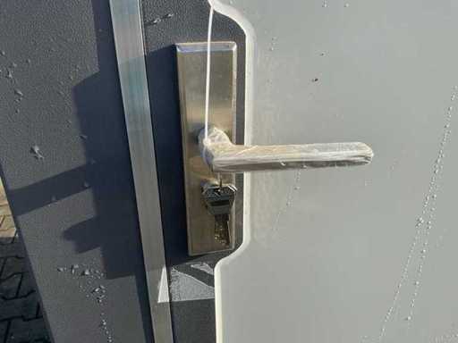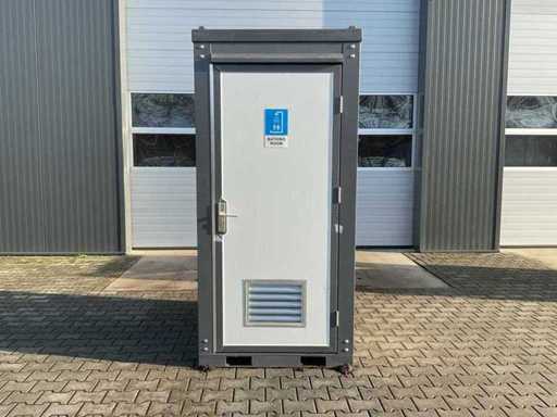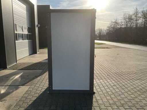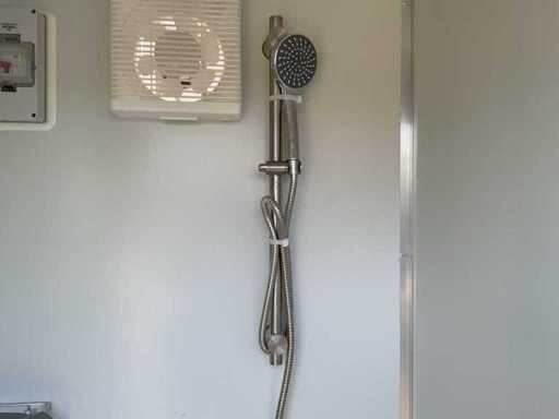 Dotato di 1 doccia; connessione a 220 volt; chiudibile con chiave e cilindro a manopola; buchi per cucchiaio; inutilizzato (Dimensioni di trasporto 1310x1100x2360, Peso 490KG)