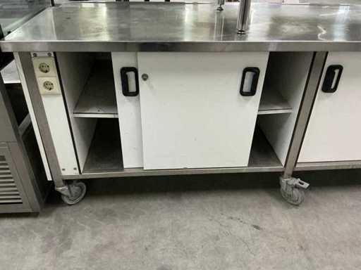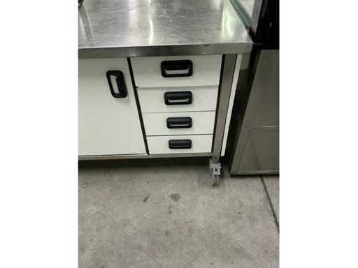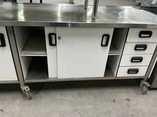 Tavolo dispensatore rimovibile con 4 porte scorrevoli, 4 cassetti