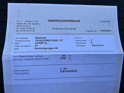 Rimorchio Hapert TA/AL 2012 MTM 2700kg