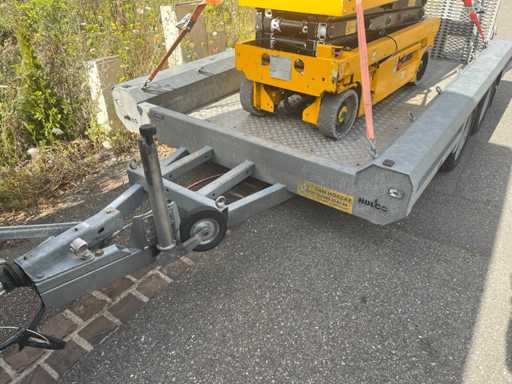Rimorchio Hulco Terrax-2, telaio zincato, peso trainabile 3000 kg, 650 kg a vuoto. Trasporto ideale per macchinari leggeri. Condizioni molto buone, vendute senza un cherry picker.