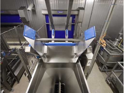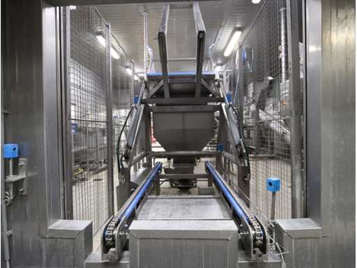 lunghezza 2000 mm, compreso nastro trasportatore a vite elevatore con tramoggia ricevente, vite Ø 400 mm, lunghezza della vite 4500 mm, altezza uscita 1700 mm, bunker per apertura in presa circa 1100x1300 mm, senza piattaforma e scale