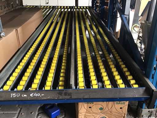 Due sezioni larghe circa 3 metri (circa 6 metri in totale) e profonde circa 320. Più che sufficienti accessori per assemblare vari nastri trasportatori e larghezze. Senza contenuti!
