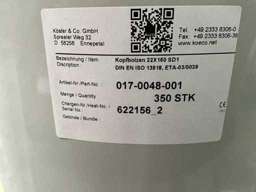 3 canne con bulloni da saldatura, 350 pezzi dimensione 22x150. Tutto nuovo