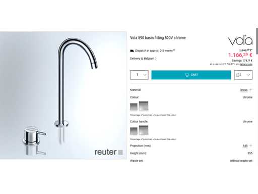Rubinetto per lavabo Vola 590V. Versione Chrome. Comprato ma mai installato. Nuovo nel pacchetto. Prezzo d'acquisto +/- 1166€.
