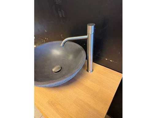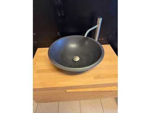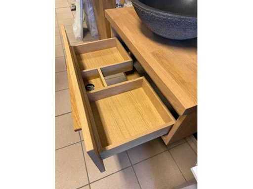 Armadio Sanijura Halo 80cm in rovere massiccio naturale con specchio, lavandino e rubinetto in acciaio Paffoni