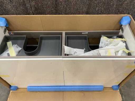 Con 6 cassetti. Incluso doppio lavandino con foro del rubinetto e trabocca.