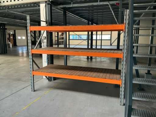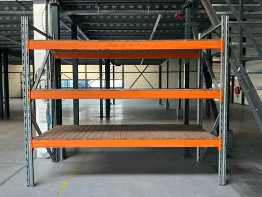Con scaffali; larghezza è di 2900 mm; l'altezza è di 2440 mm; la profondità è di 1100 mm; scaffali pesanti; viene smontato dal venditore;