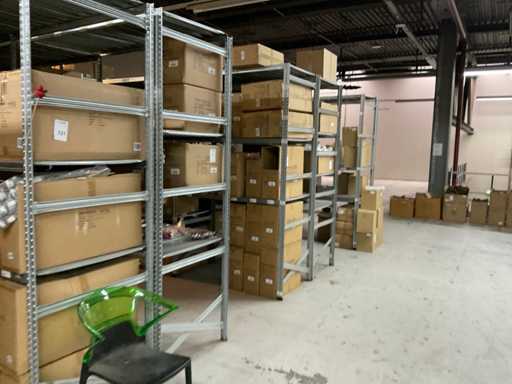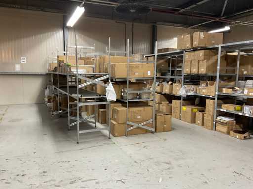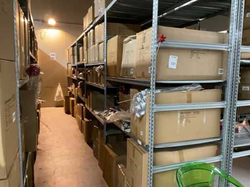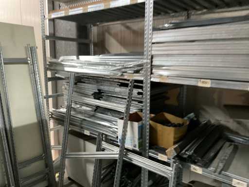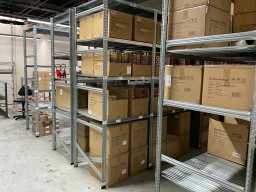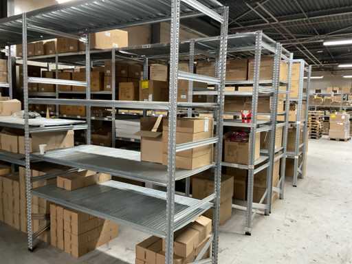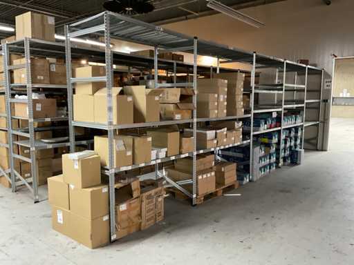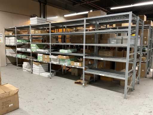 Composto da profondità 80 cm, 40 sezioni larghe 180 cm, 73 sezioni larghe 150 cm e 3 sezioni 120 cm, escluso il contenuto, lotti separati.