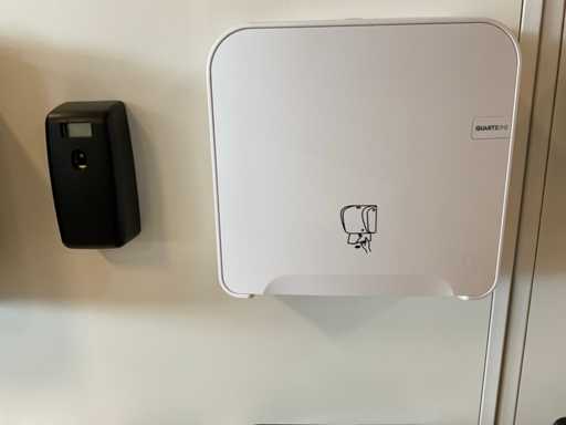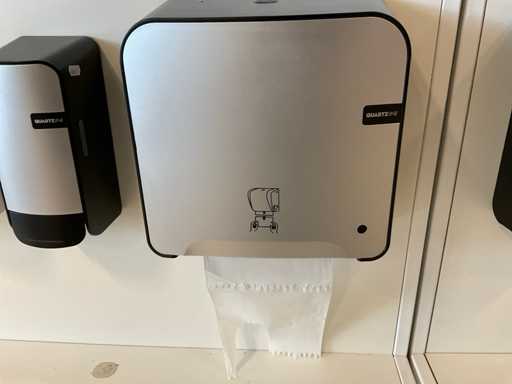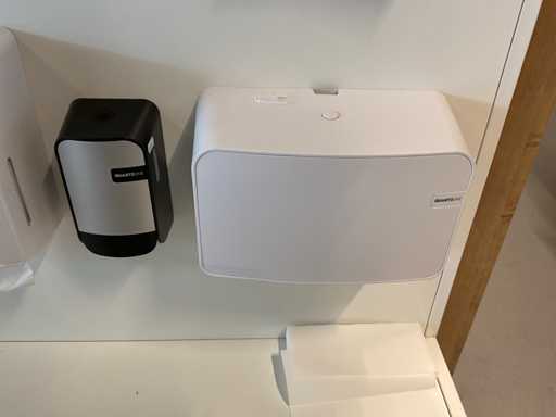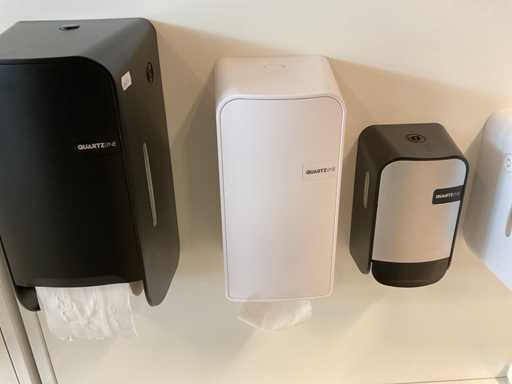 Sapone, carta igienica, distributori di asciugamani, compreso lo scaffale del negozio.
