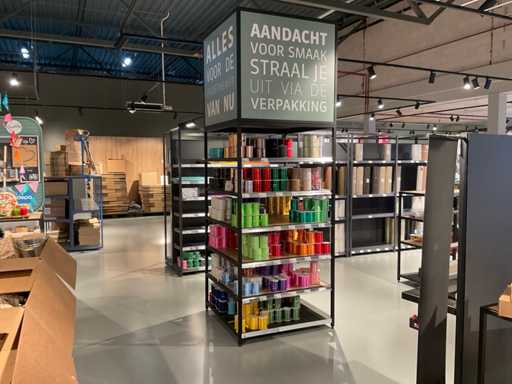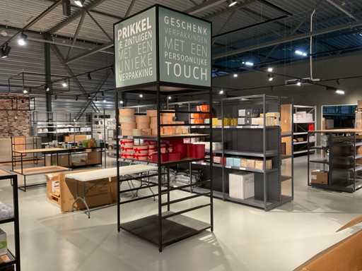 Escluso il contenuto, lotti separati, la rastrelliera è in parte smontabile, la parte più grande circa 106x106x210cm.