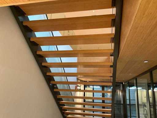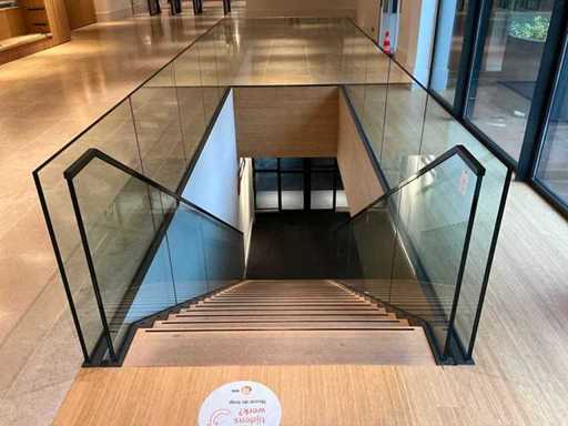 Dotato di ringhiere in vetro.