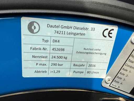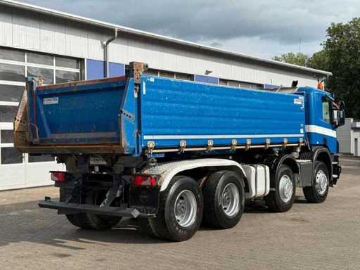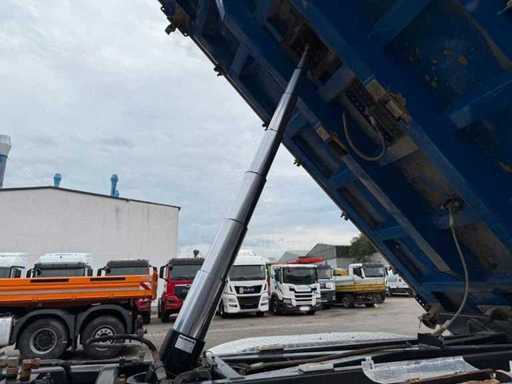 Questa Scania P410 è progettata come un camion ribaltabile a tre vie con carrozzeria DAUTEL, ideale per lavori pesanti nei settori terra, stradale e edilizia. Il camion è dotato di un potente motore diesel Euro 6 da 302 kW (±410 hp) e di una configurazione a asse 8x4, che garantisce un'eccellente trazione e stabilità durante il carico e la guida con carichi pesanti.