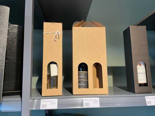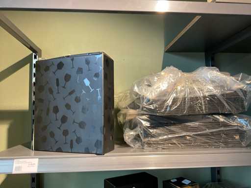 Contenuto di 1 rack, composto da scatole di bottiglie di cartone, scatole per vino e sacchetti. Escluso rack.