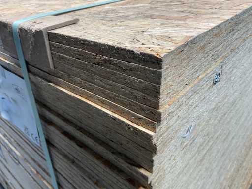 Pannelli OSB con dimensioni di 2370 x 1250 x 9 mm ciascuno.