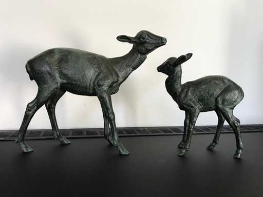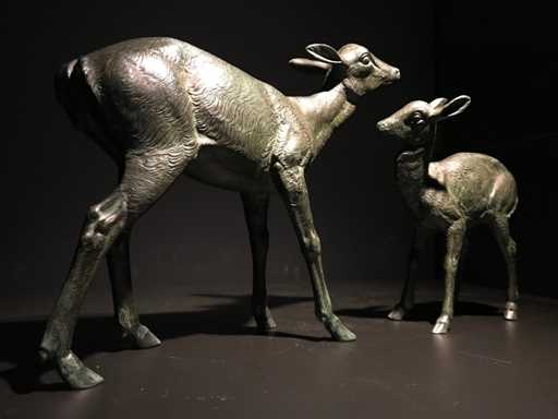 Scultura madre capriolo con cerbiatto. Molto decorativo. Lunghezza 45cm x 24cm di altezza. Caporazzi 23,5cm x 27cm, cerbiatto 19,5cm x 16,5cm.