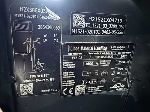 Servizio 2020 + UVV 12/2026 Linde E16 EVO 1.600kg Carrello Elevatore Elettrico Triplex 13.069 Ore
