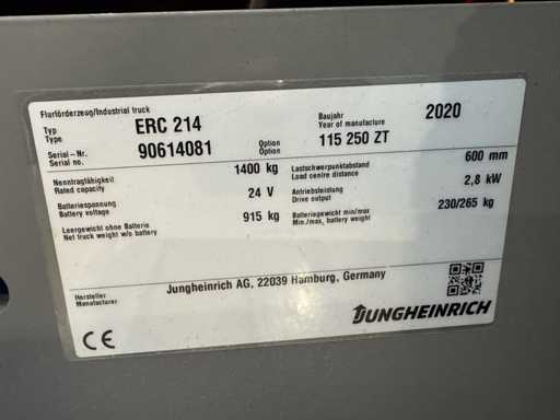 Servizio 2020 12/2026 Jungheinrich ERC214 EVO 1.400kg Piattaforma Impilatore Scalpedisti Ant 1.734 ore