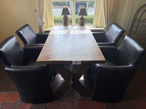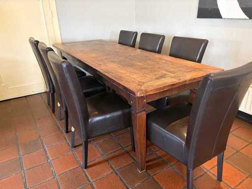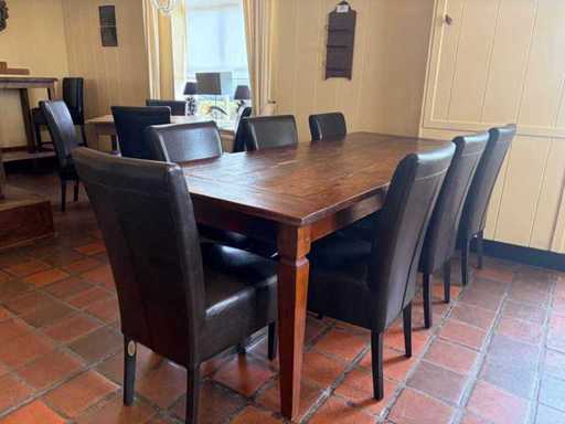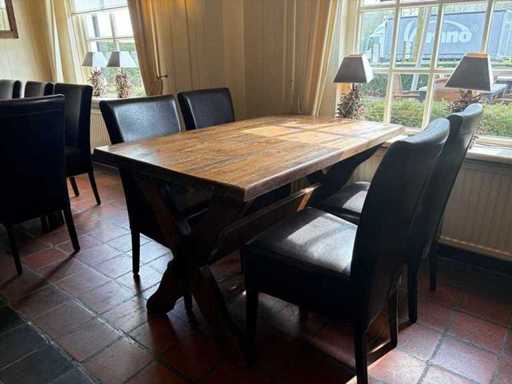 Composto da 1 x L220 x W90 x H75cm, 1 x L140 x W77 x H77cm, 2 x L90 x W75 x H80cm, 2 tavoli a barre L80 x W80 x H110 cm, L200 x W75 x H77 cm, 2 x L135 x W80 x H80cm, L210 x W77 x H80 cm e L225 x W80 x H77 cm.