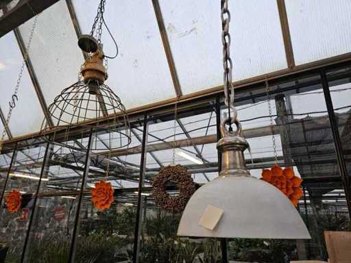 Aggiungi un tocco d'impatto al tuo soggiorno o loft con questo esclusivo set di 3 lampade a sospensione firmate. Le luci impressionano per il loro aspetto autentico e industriale e la combinazione riuscita di metallo robusto e elementi caldi in legno. Ogni lampada del set presenta un design individuale – dalla struttura delicata a griglia al paralume solido e liscio – garantendo un aspetto generale vario ma armonioso. Ideale per un'illuminazione elegante sopra tavoli da pranzo, piani di lavoro o in stanze spaziose con soffitti alti.