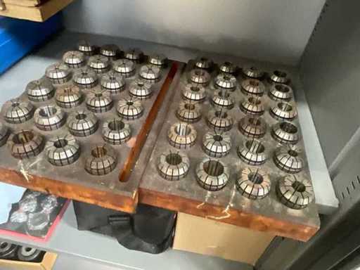 Grande quantità di colletti tipo ER40 per tenere utensili di frenatura, foratura e lavorazione di precisione.