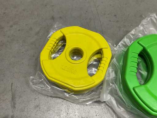 2x 1,25 kg, 2x 2,5 kg e 2x 5 kg, incl. 2x morsetto a molla.