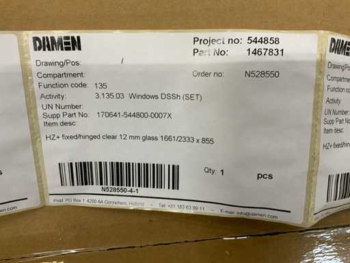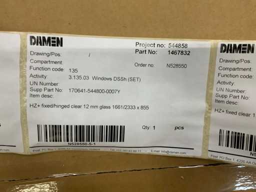 HZ+ fisso/incernierato vetro trasparente 12 mm 1661/2333 x 855