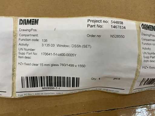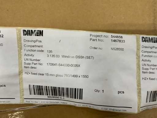 HZ+ vetro fisso trasparente da 15 mm 760/1499 x 1550