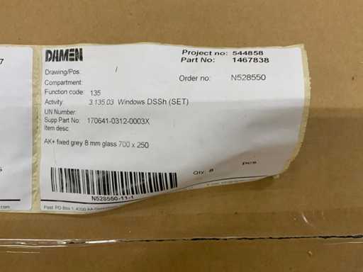 AK+ vetro fisso grigio 8 mm 700 x 250