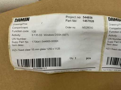 HZ+ vetro fisso trasparente da 15 mm 1250 x 1125