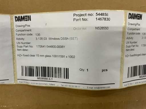 HZ+ vetro fisso trasparente da 15 mm 1091/1591 x 1002