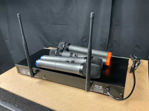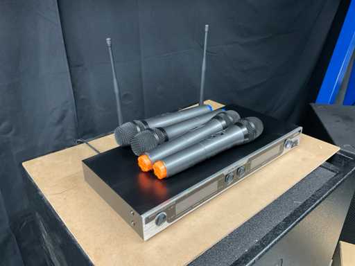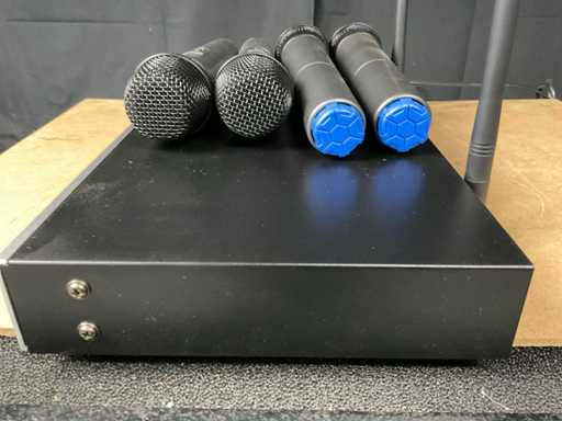 Composto da: trasmettitore e 2x microfono, frequenza UHF, 4 canali.