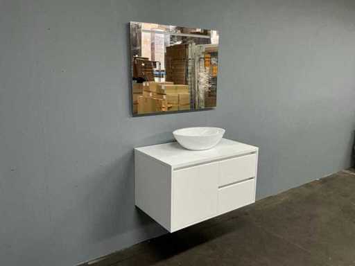 Set di armadietti base con: armadietto base 90x55x50 cm, lavabo 49x34 cm, specchio 90x70 cm