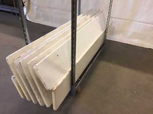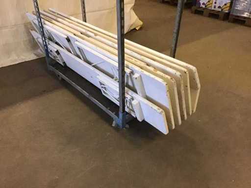 4 tavoli 3 panche dimensione 220x25x49, escluso il carrello