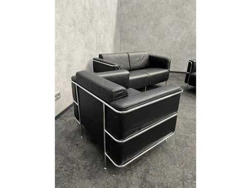 Scuro. Divano circa hxbxd 72x150x70 cm. -- Dim. Poltrone circa hxbxd 72x90x70 cm.