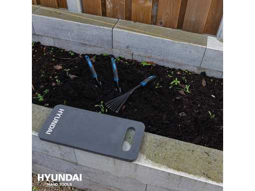 Contenuto: • Rastrello Hyundai per foglie: 42x13,5 cm • Un palo d'aria Hyundai: 33 x 5,5 cm • Un foro manuale Hyundai: 34 x 7,6 cm • Ginocchiera Hyundai: 41 x 18 x 2 cm • Un set completo in 4 pezzi: un rastrello per foglie, due pale a mano e una ginocchiera • Materiale dell'utensile: acciaio inox con rivestimento nero opaco • Manici ergonomici • Protezione per le ginocchiera in schiuma resistente