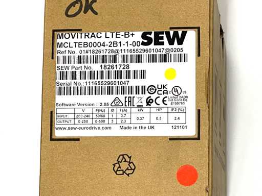 SEW Eurodrive MOVITRAC LTE-B+ MCLTEB0004-2B1-1-00, 0,37 KW, Prodotta nel Regno Unito