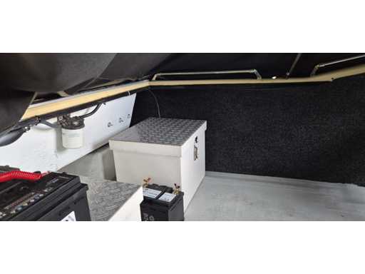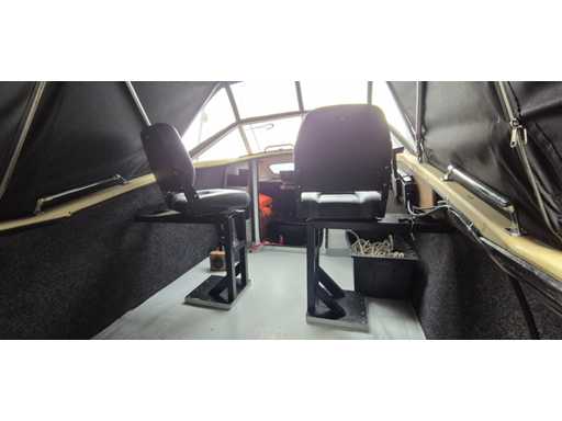 Ancora con corda, verricello elettrico, 2 giubbotti di salvataggio, bussola, sondatore di profondità / cercapesci / plotter cartografico. Peso circa 800 chili.