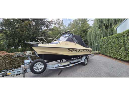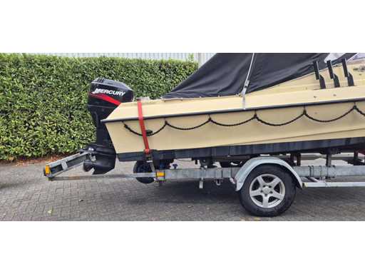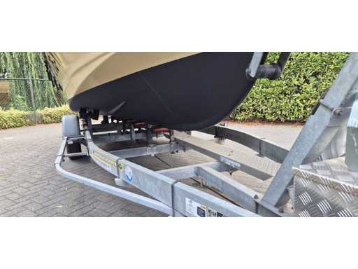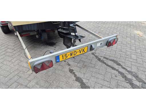 Rimorchio per vitelli, anno di costruzione 2009, capacità di carico 980 chili, carico assale di 1300 chili, verricello elettrico, ruota di scorta. La barca deve essere trasferita.